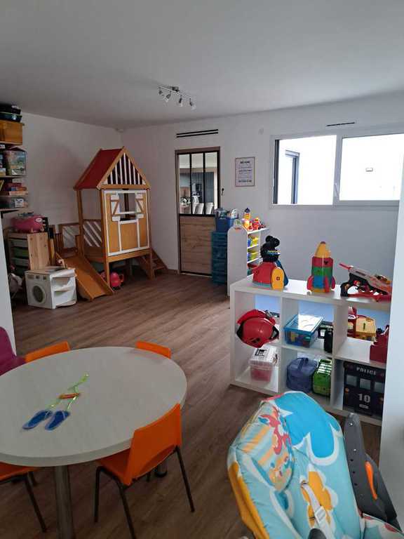 Dans un espace professionnel dédié de 50m² équipé comme une mini-crêche avec plusieurs d'espaces de jeux, d'éveil et de motricité, une cabane aux normes afin d'accueillir vos petits bouts dans les meilleurs conditions.